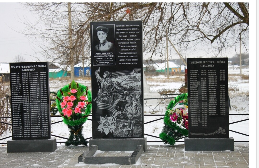 на объект «Памятник герою Советского Союза, гвардии майору, уроженцу села Власовка А.Ф. Романенко, погибшему годы Великой Отечественной войны ».